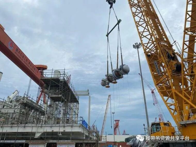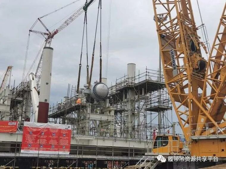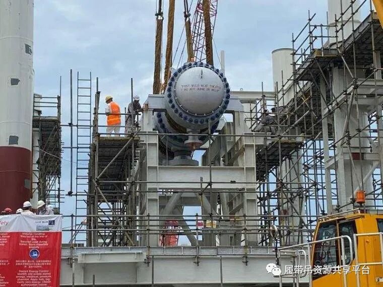 原料气加热器是加拿大LNG项目A5EA模块的主要设备之一,按照设计要求,根据青岛海工工程项目统一部署,本次原料气加热器使用750吨履带起重机进行吊装就位。为赢得二层平台扣片前的黄金吊装期,按期完成原料气加热器吊装就位工作,石化四建第一工程公司青岛海工工程项目积极与车间和业主单位进行吊装前的准备工作,所有参与吊装的施工人员经过了多次方案研讨,确认了设备吊装施工方案。充分考虑吊装前每一道工序,克服了安装精度要求高、吊装作业空间狭小等困难。在经过全体施工人员2个小时的协同作战下,原料气加热器最终顺利吊装至预定位置。