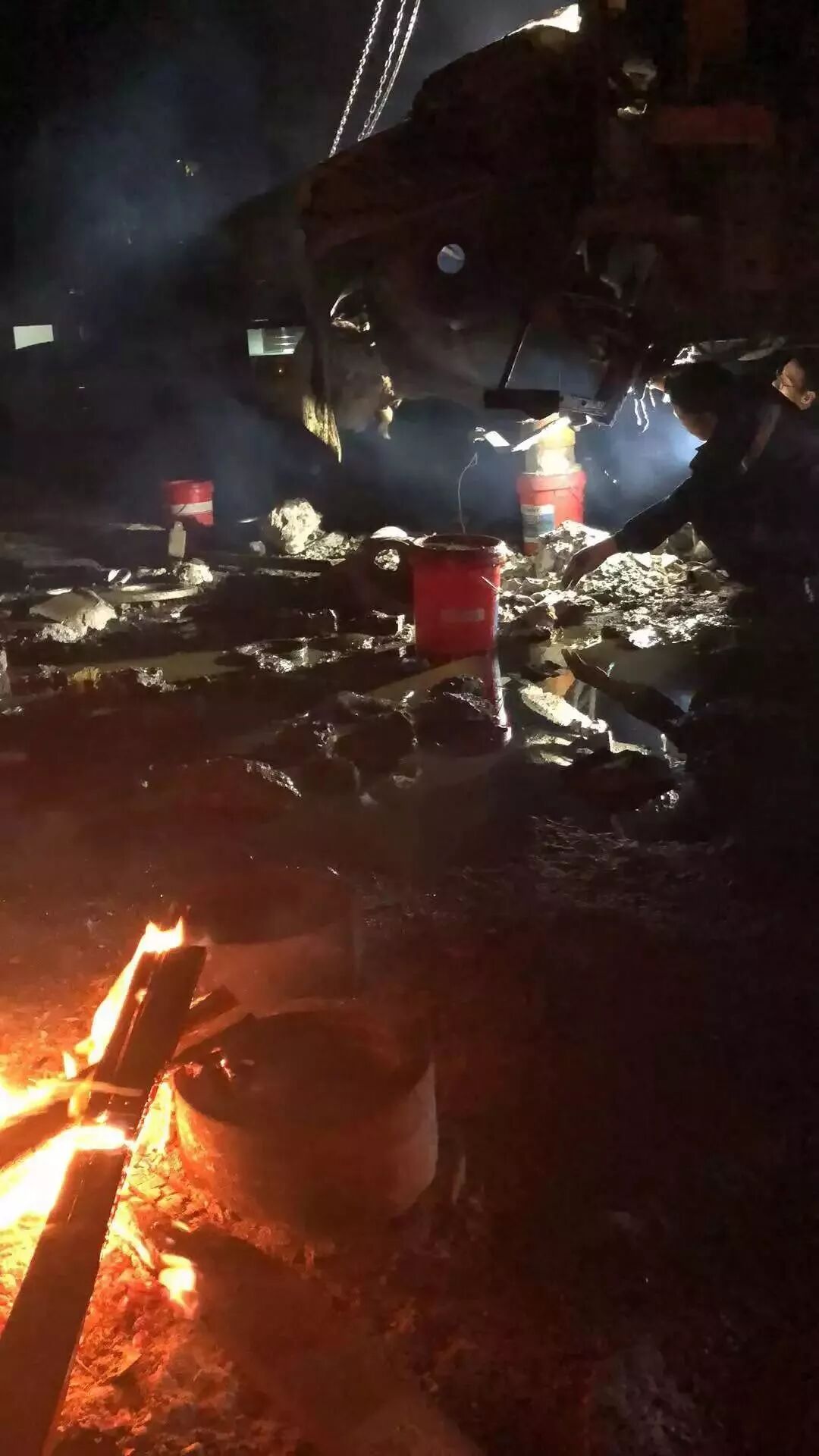 直至深夜12点,需要技改的设备才全部修理完成,负责技改的工程师立马加入新设备的维修作业中,夜间风很大,维修场地上全是石头和油。他们的双手又湿又冷,虽然在一旁燃起了火堆,但效果微乎其微,没有挡风避雨的条件,他们忍受着深夜的寒冷,直至凌晨五六点,终于完成了设备的维修工作。
