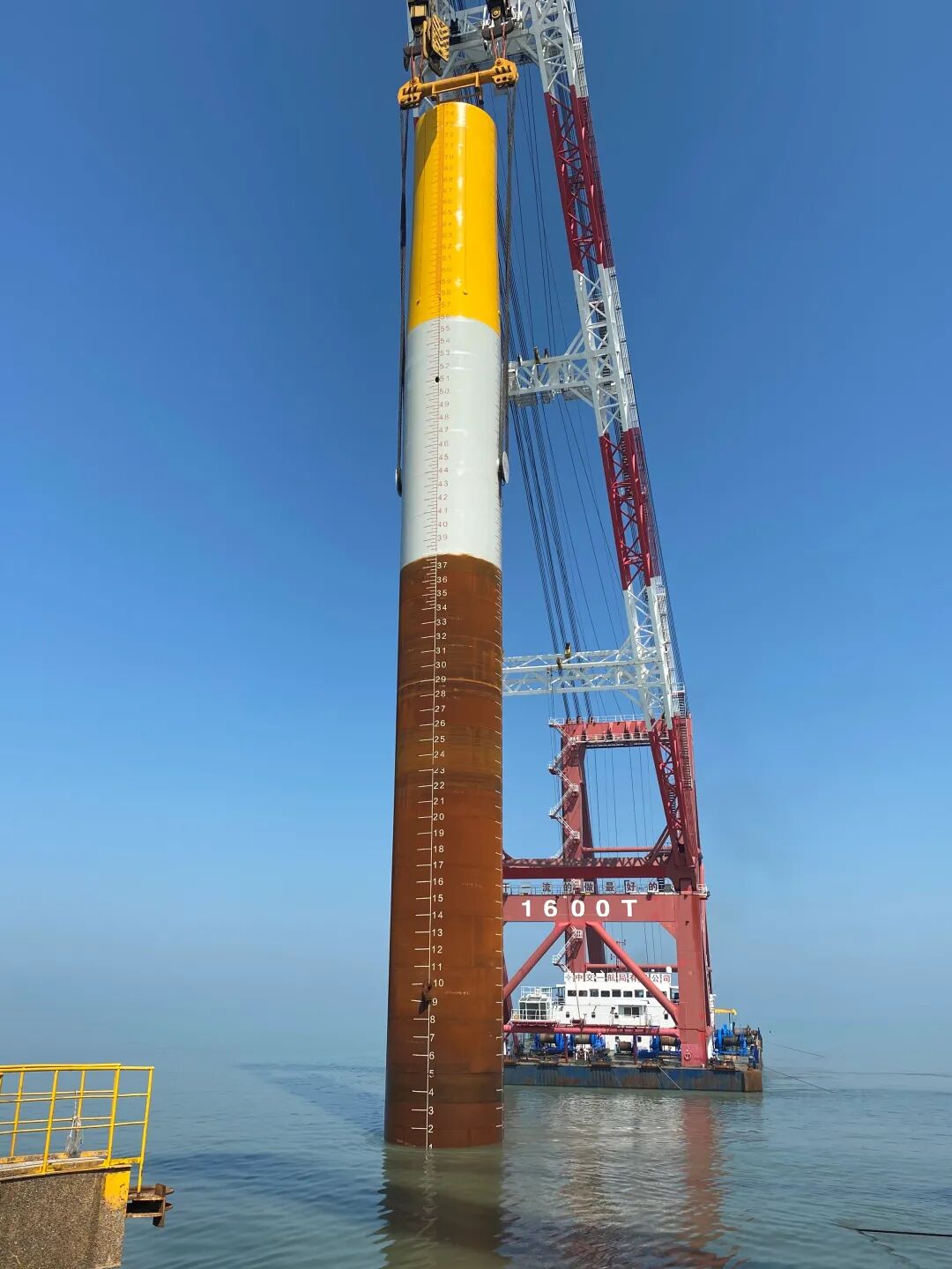 6月21日23时55分,由分公司与一公司共同承建是吊车图片的江苏启东海上风电项目顺利完成H2-36号钢管桩沉桩任务,打下项目第62根单桩。